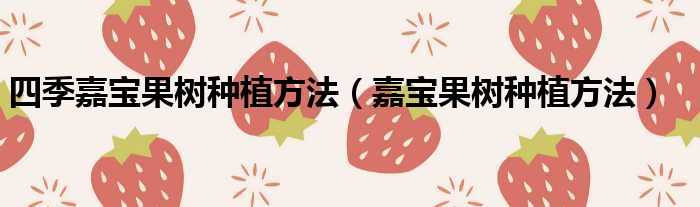 四季嘉宝果树种植方法(嘉宝果树种植方法)