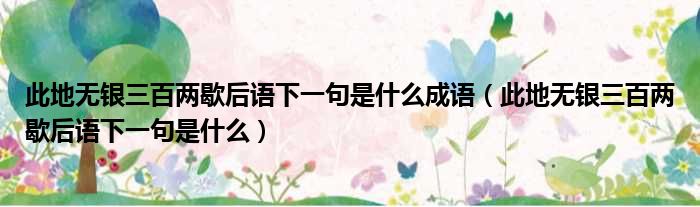 此地无银三百两歇后语下一句是什么成语(此地无银三百两歇后语下一句是什么)