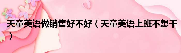 大家好,小东方来为大家解答以上的问题。天童美语做销售好不好,天童美语上班不想干这个很多人还不知道,现在让我们一起来看看吧!