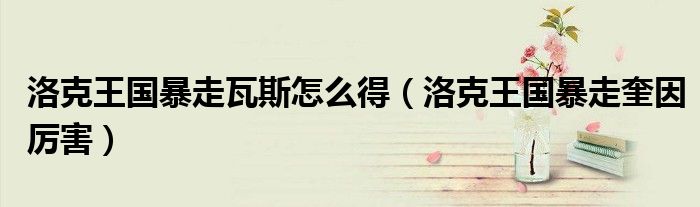 洛克王国暴走瓦斯怎么得(洛克王国暴走奎因厉害)