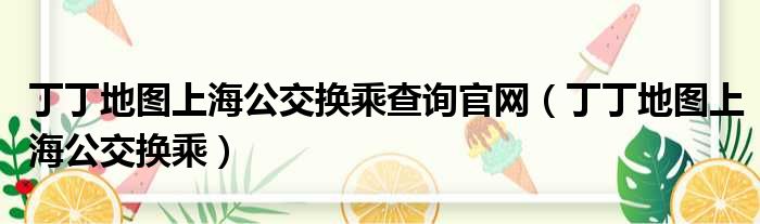 丁丁地图上海公交换乘查询官网(丁丁地图上海公交换乘)