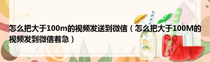 怎么把大于100m的视频发送到微信(怎么把大于100M的视频发到微信着急)