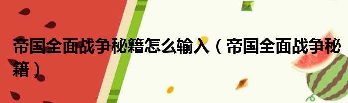 帝国全面战争秘籍怎么输入(帝国全面战争秘籍)