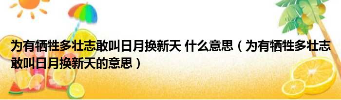导读 大家好,小东方来为大家解答以上的问题。为有牺牲多壮志敢叫日月换新天 什么意思,为有牺牲多壮志敢叫日月换新天的意思这个很多人还不知道,