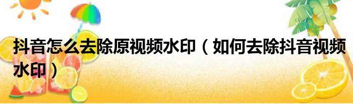 抖音怎么去除原视频水印(如何去除抖音视频水印)