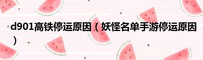 大家好,小东方来为大家解答以上的问题。d901高铁停运原因,妖怪名单手游停运原因这个很多人还不知道,现在让我们一起来看看吧!