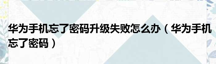 华为手机忘了密码升级失败怎么办(华为手机忘了密码)