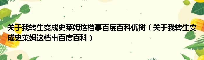 关于我转生变成史莱姆这档事百度百科优树(关于我转生变成史莱姆这档事百度百科)