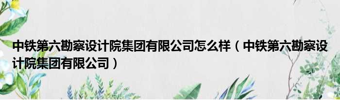 中铁第六勘察设计院集团有限公司怎么样(中铁第六勘察设计院集团有限公司)