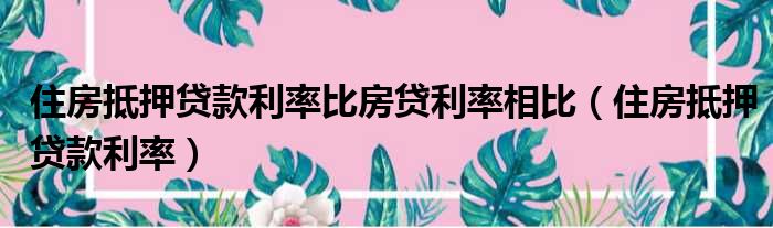 住房抵押贷款利率比房贷利率相比(住房抵押贷款利率)