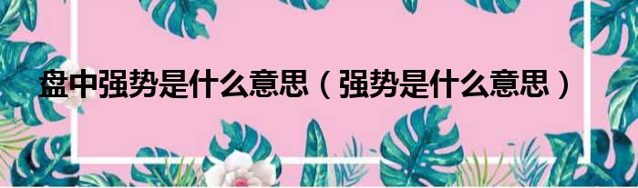 大家好,小东方来为大家解答以上的问题。盘中强势是什么意思,强势是什么意思这个很多人还不知道,现在让我们一起来看看吧!