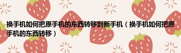 换手机如何把原手机的东西转移到新手机(换手机如何把原手机的东西转移)