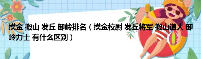大家好,小东方来为大家解答以上的问题。摸金 搬山 发丘 卸岭排名,摸金校尉 发丘将军 搬山道人 卸岭力士 有什么区别这个很多人还不知道,现在让我们一起来看看吧!