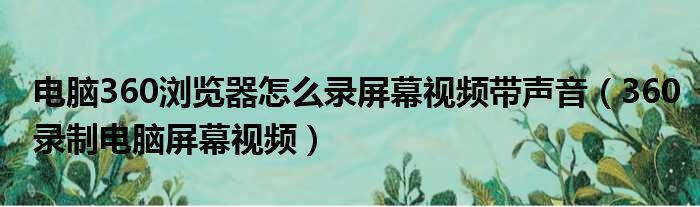 电脑360浏览器怎么录屏幕视频带声音(360录制电脑屏幕视频)