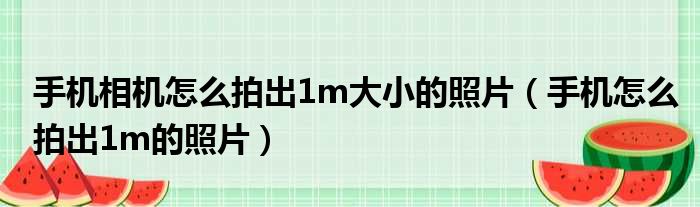 手机相机怎么拍出1m大小的照片(手机怎么拍出1m的照片)