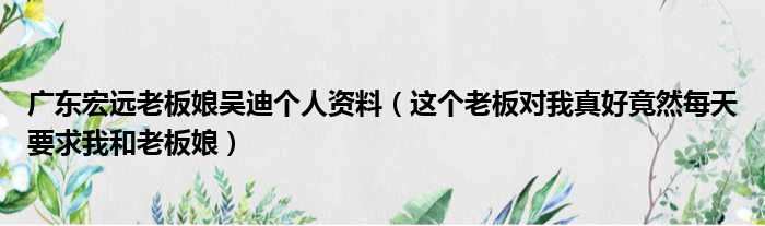 广东宏远老板娘吴迪个人资料(这个老板对我真好竟然每天要求我和老板娘)