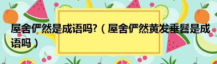 屋舍俨然是成语吗?(屋舍俨然黄发垂髫是成语吗)