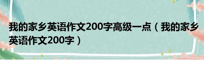 我的家乡英语作文200字高级一点(我的家乡英语作文200字)
