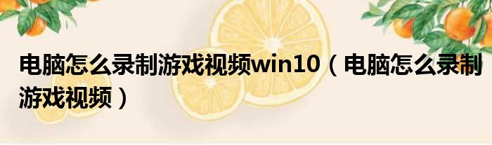 电脑怎么录制游戏视频win10(电脑怎么录制游戏视频)