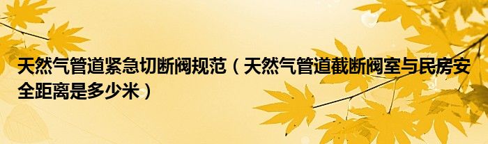 天然气管道紧急切断阀规范(天然气管道截断阀室与民房安全距离是多少米)