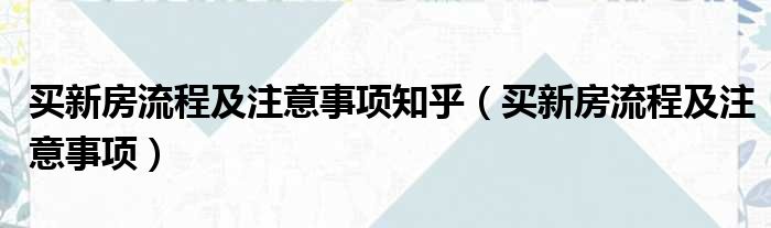 买新房流程及注意事项知乎(买新房流程及注意事项)