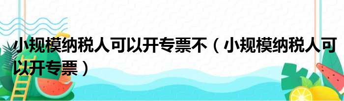 小规模纳税人可以开专票不(小规模纳税人可以开专票)