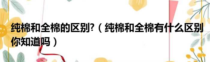 纯棉和全棉的区别?(纯棉和全棉有什么区别你知道吗)