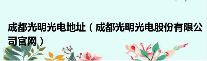 成都光明光电地址(成都光明光电股份有限公司官网)
