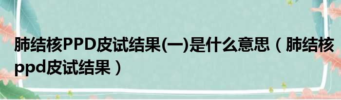 肺结核PPD皮试结果(一)是什么意思(肺结核ppd皮试结果)