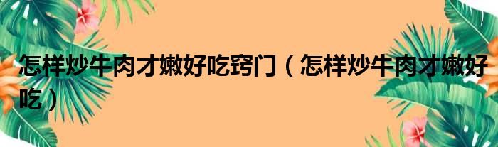 怎样炒牛肉才嫩好吃窍门(怎样炒牛肉才嫩好吃)