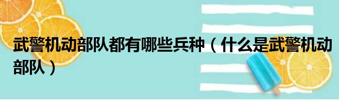 武警机动部队都有哪些兵种(什么是武警机动部队)