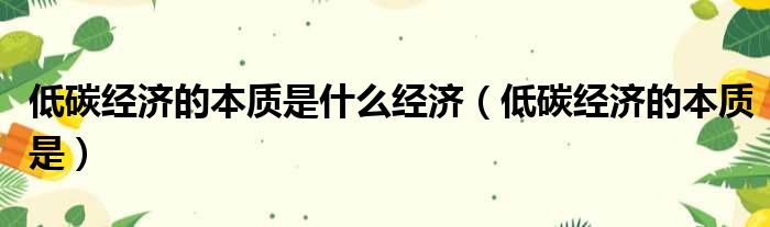 低碳经济的本质是什么经济(低碳经济的本质是)