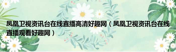 凤凰卫视资讯台在线直播高清好趣网(凤凰卫视资讯台在线直播观看好趣网)