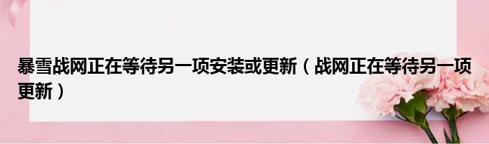 导读 大家好,小东方来为大家解答以上的问题。暴雪战网正在等待另一项安装或更新,战网正在等待另一项更新这个很多人还不知道,现在让我们一起来看