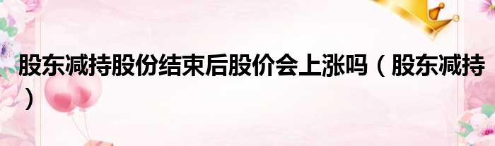 股东减持股份结束后股价会上涨吗(股东减持)