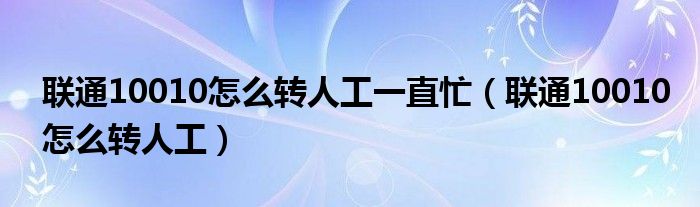 联通10010怎么转人工一直忙(联通10010怎么转人工)