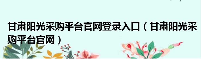 甘肃阳光采购平台官网登录入口(甘肃阳光采购平台官网)