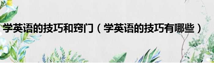 学英语的技巧和窍门(学英语的技巧有哪些)