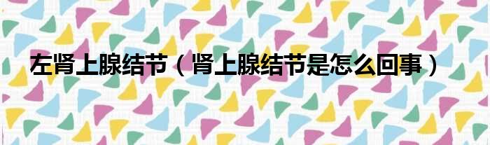 大家好,小东方来为大家解答以上的问题。左肾上腺结节,肾上腺结节是怎么回事这个很多人还不知道,现在让我们一起来看看吧!