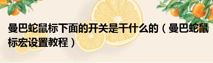 曼巴蛇鼠标下面的开关是干什么的(曼巴蛇鼠标宏设置教程)