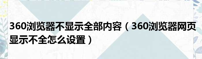 360浏览器不显示全部内容(360浏览器网页显示不全怎么设置)