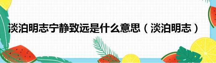 淡泊明志宁静致远是什么意思(淡泊明志)