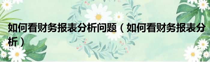 如何看财务报表分析问题(如何看财务报表分析)