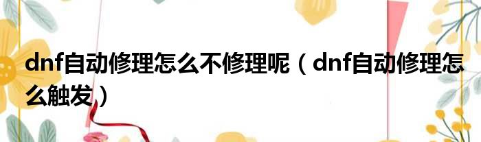 dnf自动修理怎么不修理呢(dnf自动修理怎么触发)