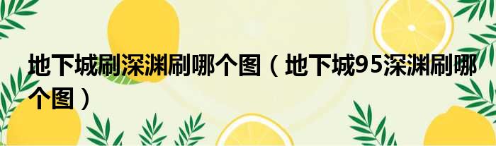 地下城刷深渊刷哪个图(地下城95深渊刷哪个图)