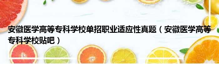 安徽医学高等专科学校单招职业适应性真题(安徽医学高等专科学校贴吧)