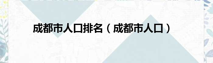 大家好,小东方来为大家解答以上的问题。成都市人口排名,成都市人口这个很多人还不知道,现在让我们一起来看看吧!