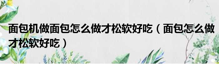 面包机做面包怎么做才松软好吃(面包怎么做才松软好吃)