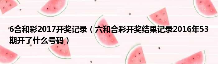 6合和彩2017开奖记录(六和合彩开奖结果记录2016年53期开了什么号码)