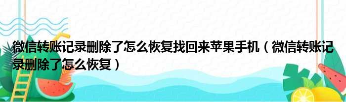 微信转账记录删除了怎么恢复找回来苹果手机(微信转账记录删除了怎么恢复)